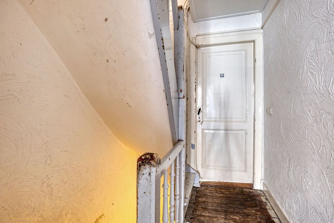 Via de trap op de overloop van de tweede verdieping bereikt u de overloop op de derde verdieping van ca. 4 m² groot. Hier bevinden zich de deuren naar de twee royale kamers, een praktische berging en kastruimte.