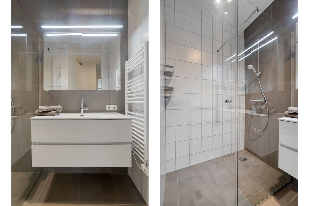 • Badkamer: De moderne badkamer van ca. 3 m² groot en voorzien van een inloopdouche, een wastafelmeubel met dubbele wastafel, een spiegelkast met verlichting en een handdoekradiator.