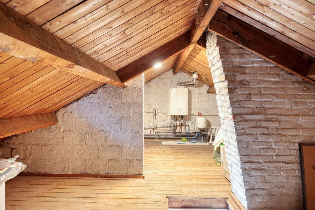 Via de vlizotrap bereikt u de zolderverdieping, een ruimte van ca. 45 m². Door de lagere nokhoogte wordt deze momenteel uitsluitend gebruikt als bergzolder. Hier bevindt zich tevens de cv-installatie (Remeha, …,…).