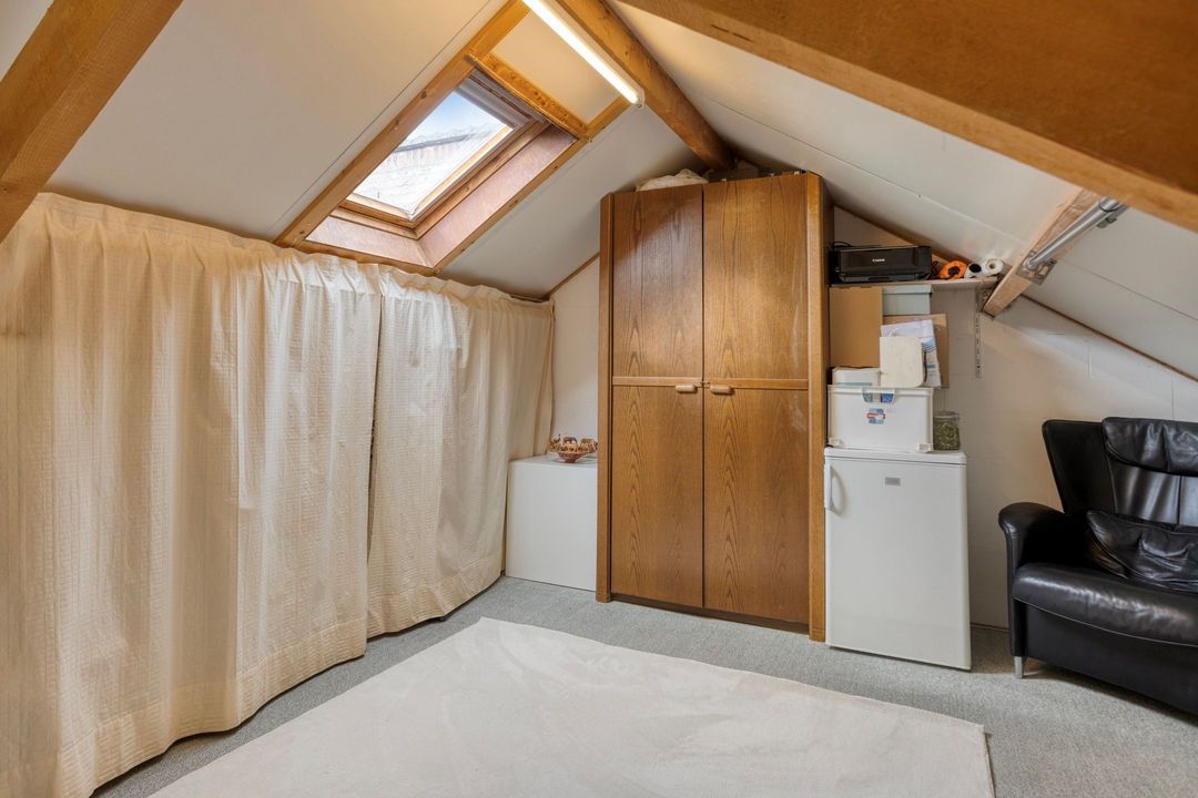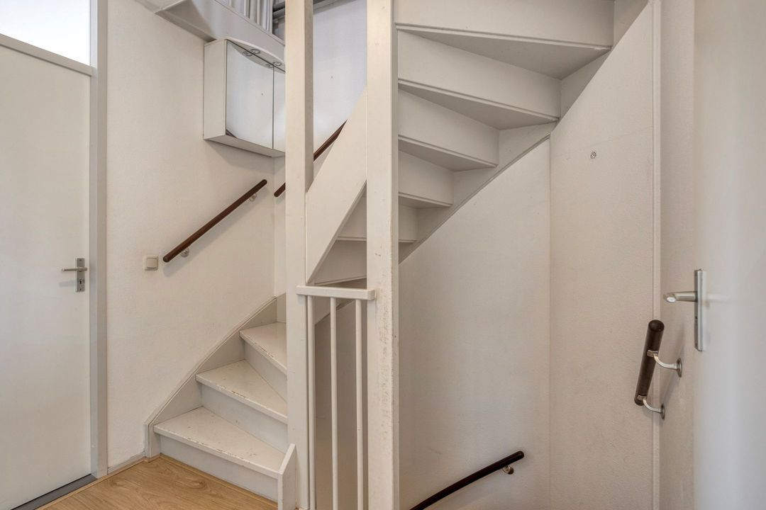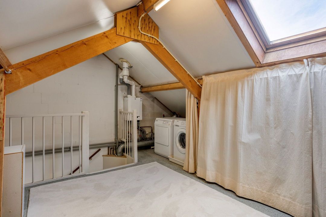 Een vaste trap leidt naar de tweede verdieping, een multifunctionele ruimte met een vloeroppervlakte van circa 36 m². Hier bevinden zich de witgoedaansluiting en de cv-installatie (Remeha, 2020, Eigendom). Met enkele aanpassingen kan deze verdieping eenvoudig worden omgevormd tot een extra slaapkamer of werkruimte, waardoor de woning extra flexibiliteit biedt voor uiteenlopende woonwensen.
