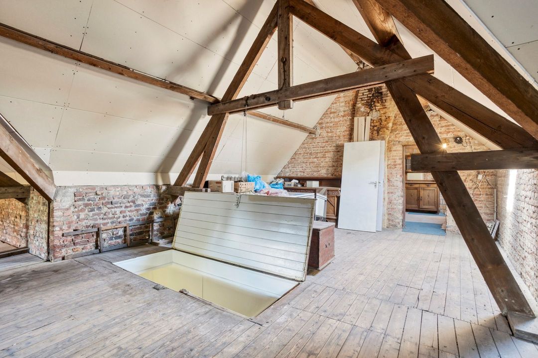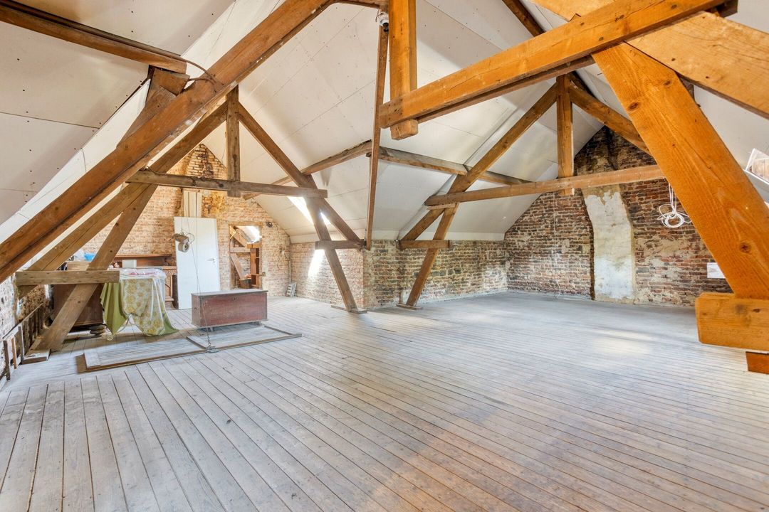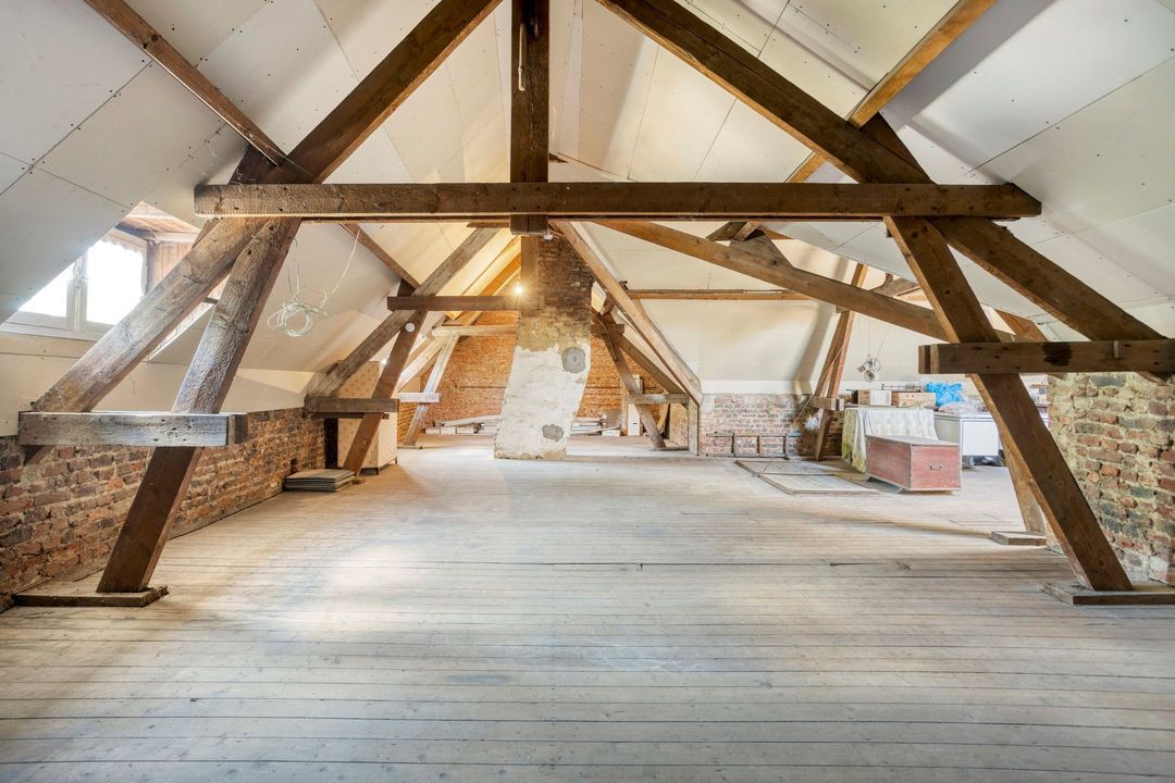 De royale zolderverdieping is bereikbaar via een vaste trap en biedt twee separate ruimtes van respectievelijk circa 99 m² en 16 m². Deze etage wordt gekenmerkt door de prachtige, zichtbare balkenconstructie en een hoge nok, wat een bijzonder ruimtelijk gevoel creëert. Dankzij de omvang en indeling zijn hier diverse gebruiksmogelijkheden denkbaar. Met enkele aanpassingen is het bovendien eenvoudig mogelijk om een extra slaapkamer te realiseren.