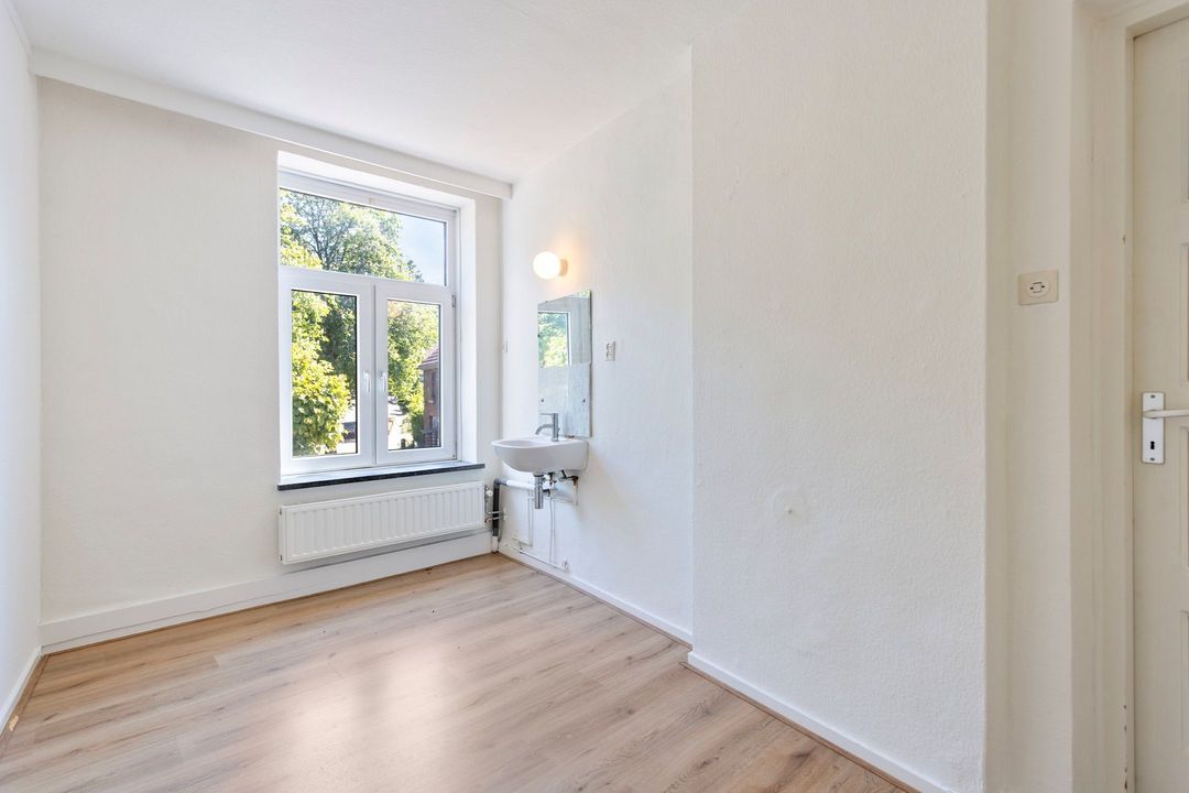 De bijkeuken van circa 7,5 m² biedt extra bergruimte en is uitermate geschikt voor een vriezer of andere apparatuur. Ook vanuit de bijkeuken is de tuin eenvoudig bereikbaar.
