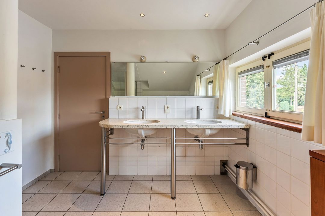 Op de eerste verdieping komt u via de nachthal bij een apart toilet en vier riante slaapkamers van circa 20 m², 14 m², 11 m² en 9 m², waarvan twee zijn voorzien van een eigen wastafel. De verdieping wordt gecompleteerd door een ruime badkamer met dubbele wastafel en douche.