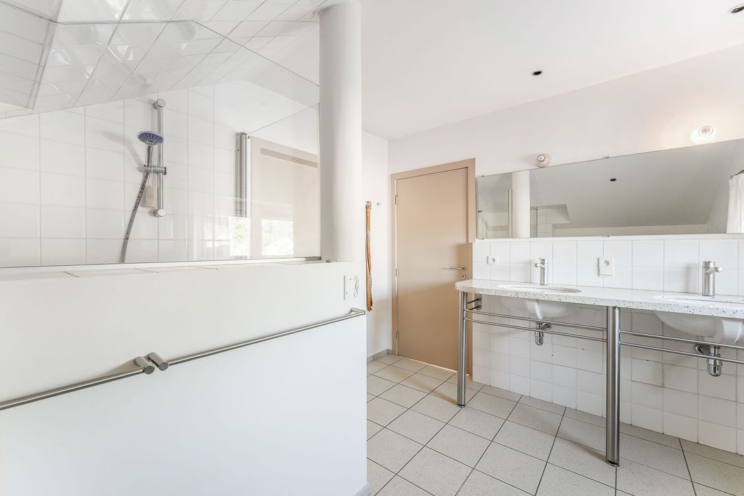 De woning beschikt over een volwaardige praktijkruimte van circa 87 m², ideaal voor uiteenlopende beroeps- of hobbydoeleinden. Deze ruimte omvat een inkomhal met wachtzaal van ongeveer 10 m² en een naastgelegen ontvangstruimte van circa 14 m², evenals een apart toilet. Achter deze ruimtes bevinden zich multifunctionele kamers van circa 54 m², die dankzij verplaatsbare wanden flexibel kunnen worden ingedeeld, aangevuld met een bergruimte van circa 3 m².