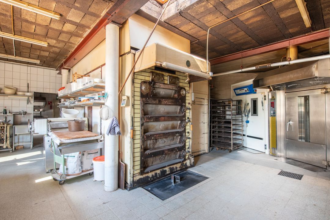 De bakkerij heeft in totaal een vloeroppervlakte van 340m2 die in verschillende ruimtes onderverdeeld is. Zo zijn er meerdere koel-, opslag-, en werkruimtes waarvan de vloeren en de muren netjes afgewerkt zijn.