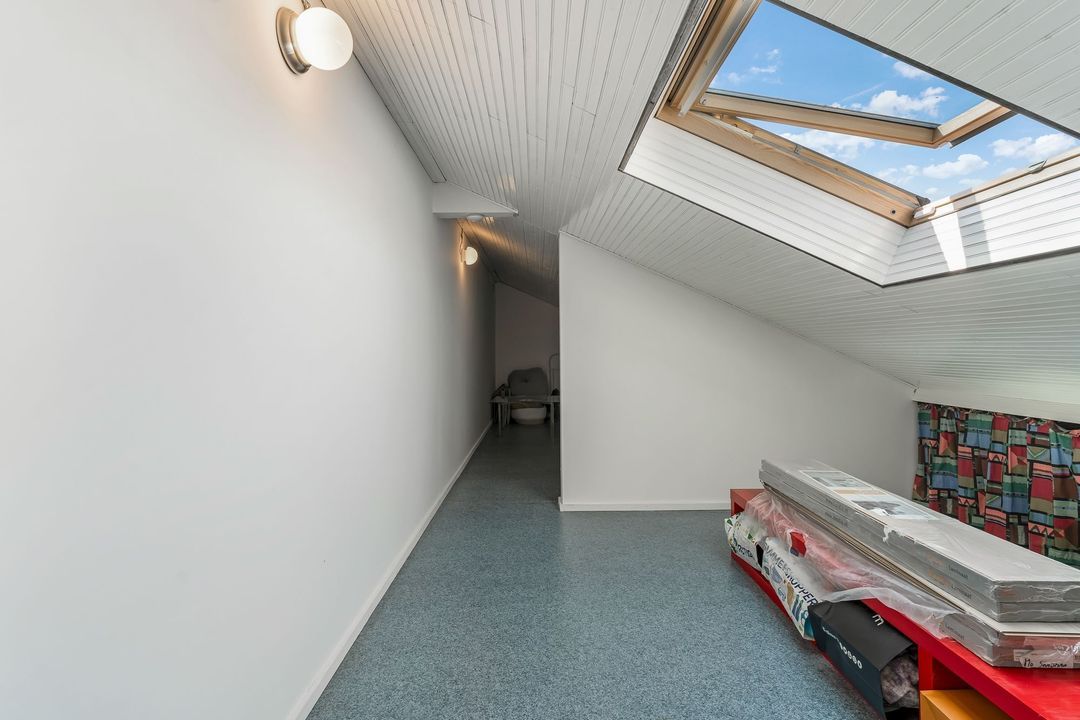 De praktische zolderruimte: ca. 14 m². Dankzij het aanwezige Velux-dakraam is er aangename lichtinval, waardoor deze ruimte uitstekend geschikt is als bergzolder, werkplek of hobbykamer. Ook uitbreiding naar een extra slaapkamer behoort tot de mogelijkheden.