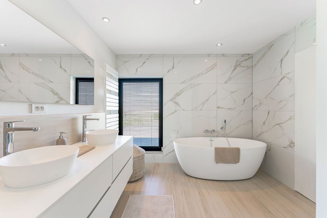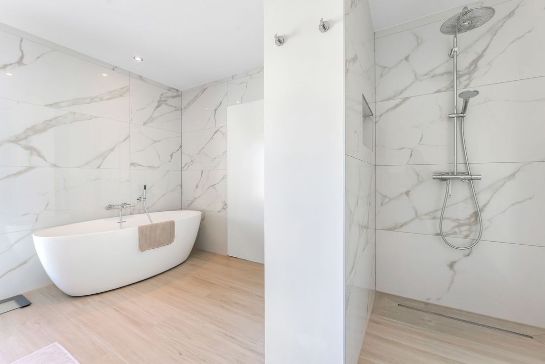 • Badkamer: De recent vernieuwde badkamer (ca. 12 m²) straalt luxe en elegantie uit en is voorzien van een ligbad, ruime inloopdouche, dubbel wastafelmeubel en toilet.