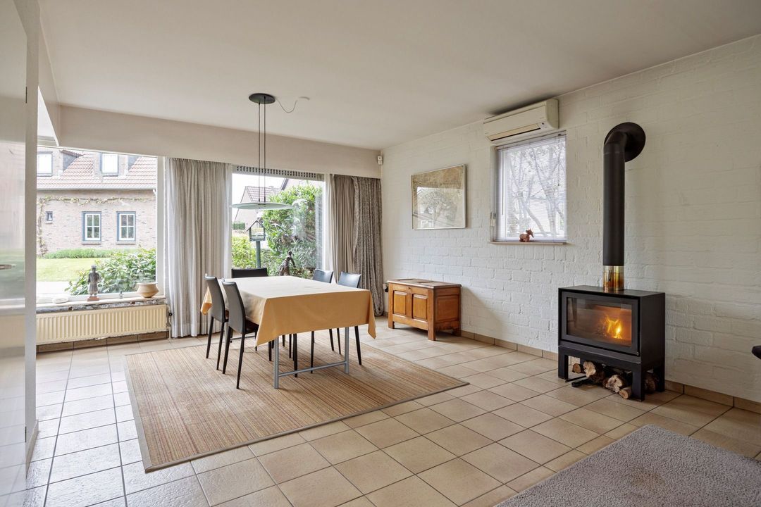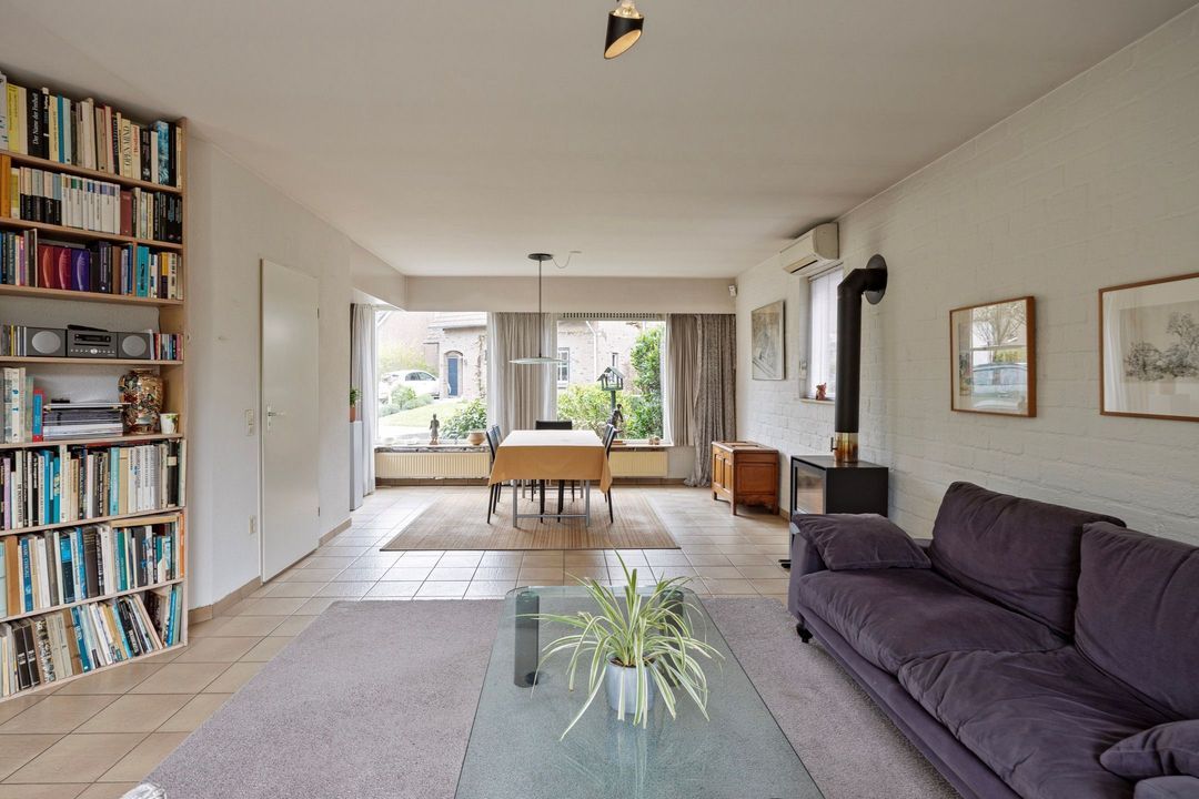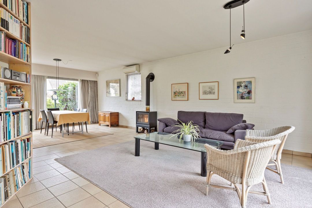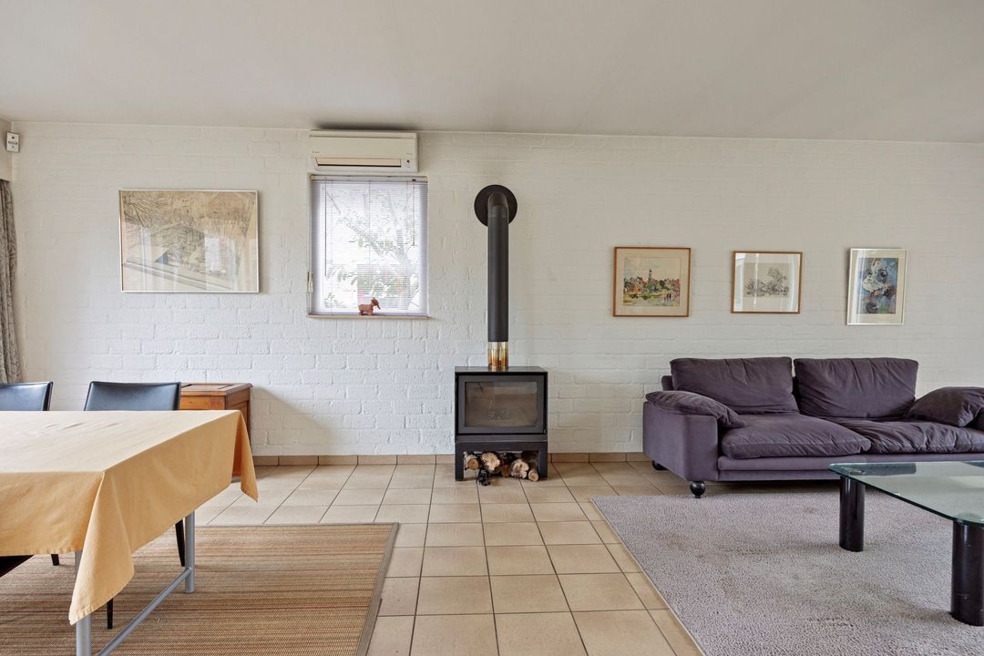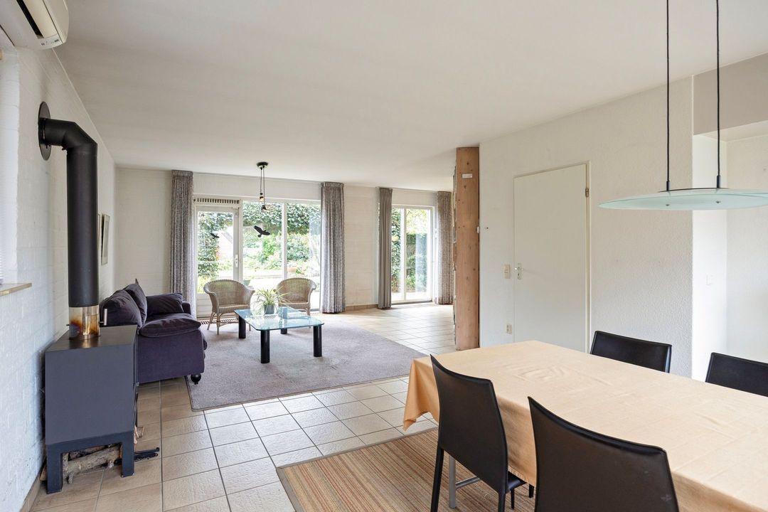 De woonkamer met open keuken heeft een totale oppervlakte van circa 51 m² en vormt een fijne leefruimte. Dankzij de grote raampartijen aan zowel de voor- als achterzijde geniet u hier van een prachtige lichtinval gedurende de hele dag. De centraal geplaatste houtkachel geeft de ruimte extra karakter en sfeer. Tevens is de woonkamer voorzien van airconditioning. Via de openslaande deur heeft u direct toegang tot de achtertuin, waardoor binnen en buiten op natuurlijke wijze in elkaar overlopen.