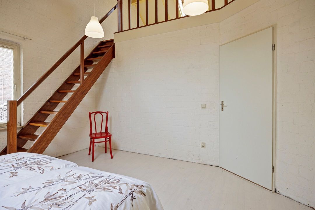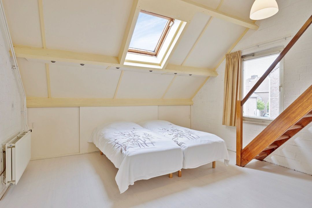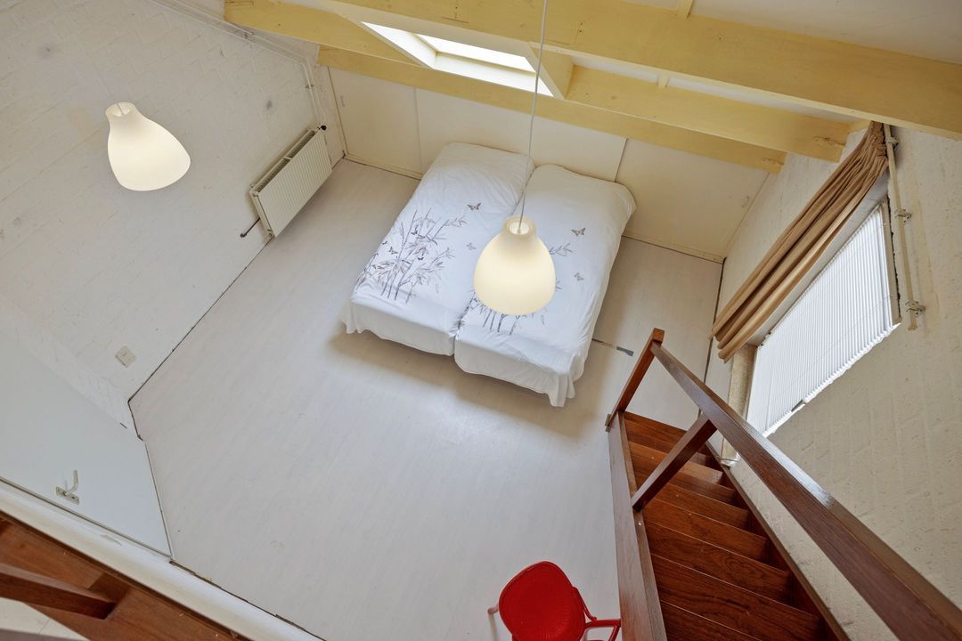 • Slaapkamer 1: Deze ruime slaapkamer is ca. 15 m² groot en voorzien van een trap naar de ruime zolderverdieping. Deze trap kan worden verplaatst door een nieuwe eigenaar, zodat er een aparte toegang kan worden gecreëerd. Het is eventueel ook een prachtige werkkamer.