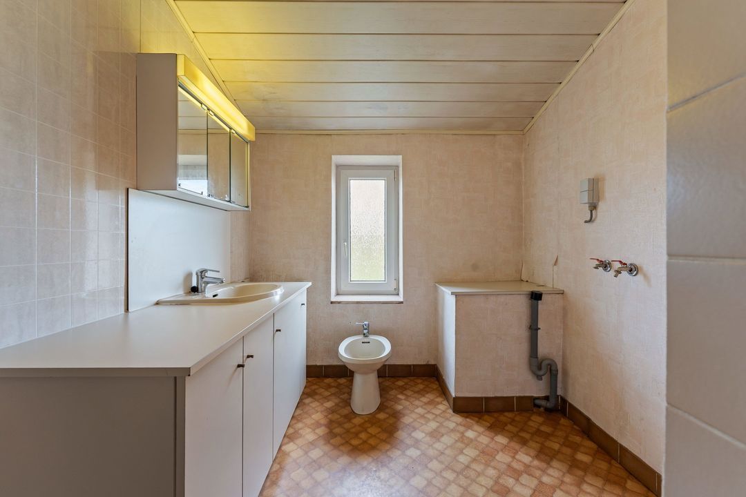 Via de traphal bereikt u de lichtrijke leefruimte van 25 m², waar de authentieke elementen mooi behouden zijn gebleven. Aansluitend bevindt zich de keuken van 13 m², uitgerust met een elektrische kookplaat. De veranda/cv-ruimte van 31 m² geeft uit op het zonnige terras. Verder is er een apart toilet en een badkamer van 7 m², voorzien van douche, lavabo en bidet.